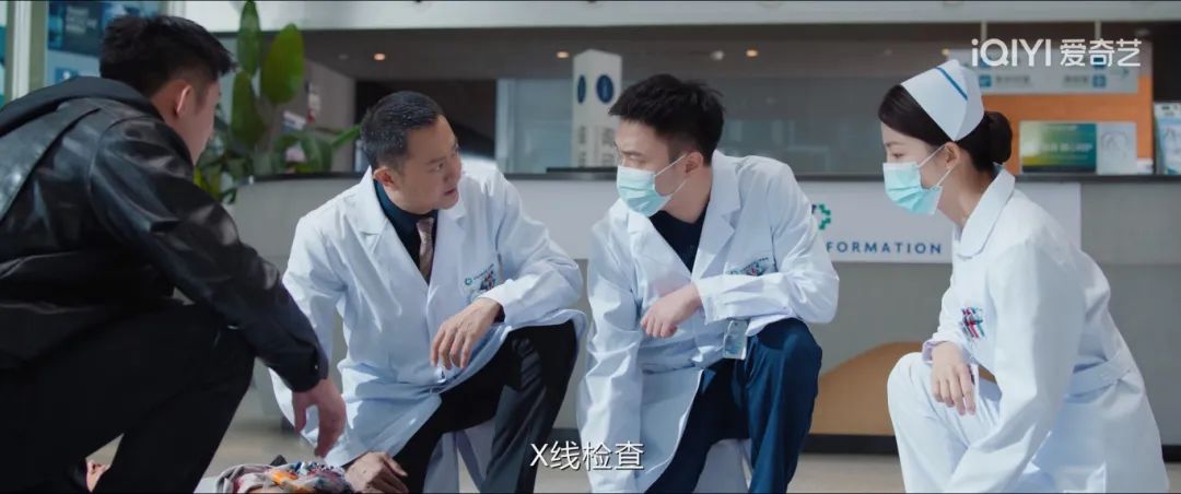 黄景瑜饰演的刑警江成屹指着患者向他描述情况,第一句话就清楚告知,这人身上有炸弹。